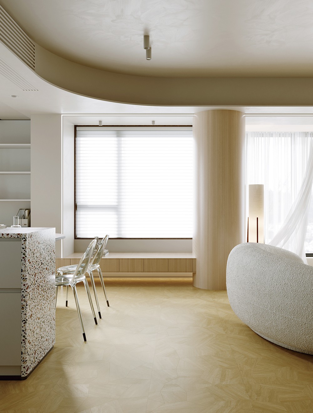 清透如初春新木,仿若晨光穿過林間,淺橡底色中透出細(xì)膩木紋,清新柔和,盡顯素雅。